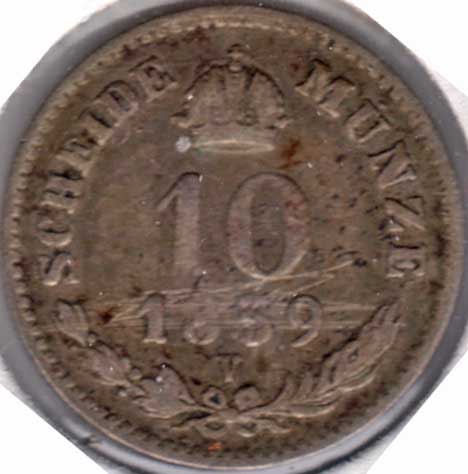 10 Kreuzer (silver) 1859V 2204 u5tp1.jpg (43275 bytes) u5tp1x.jpg (44270 bytes)   VG 2.50