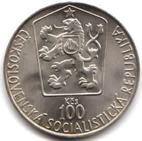 100 Korun (silver) 1985 117 czkm117.jpg (13467 bytes) czkm117r.jpg (10672 bytes) 1985 Ice Hockey Championships  In 1997 Czech Bank melted 38 pcs Choice BU