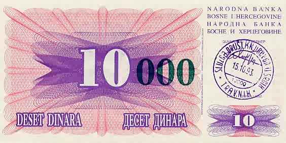 10000 Dinara 24.12.1993 53d bosniap53d.jpg (21310 bytes) Emergency issue large red zeros UNC 10.00