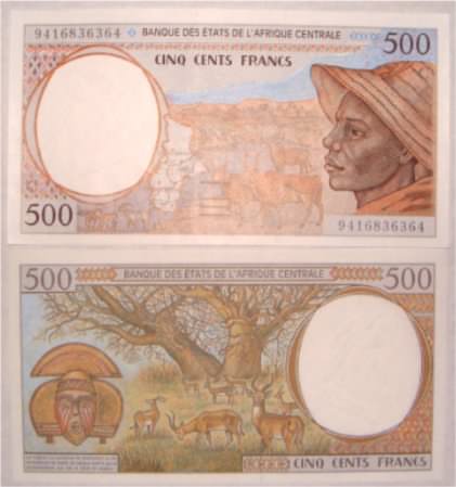 500 Francs 2002 206U  casnew500francs2002u.jpg (41820 bytes)  casnew500francs2002ux.jpg (40042 bytes) U for Cameroon  School Children UNC 4.00