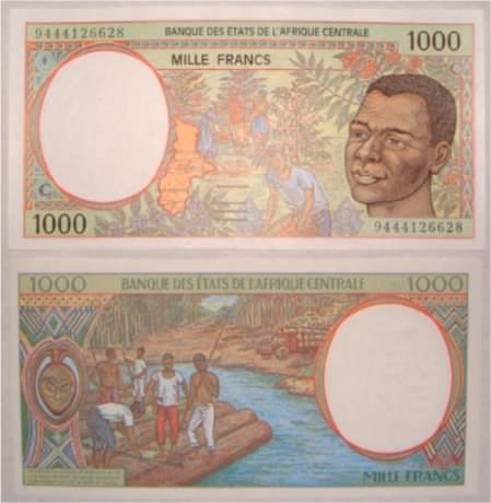 1000 Francs 2002 207U casnew1000francsu.jpg (27822 bytes) casnew1000francsux.jpg (29479 bytes) U for Cameroon   Logging & Farming  Tractor UNC 6.00
