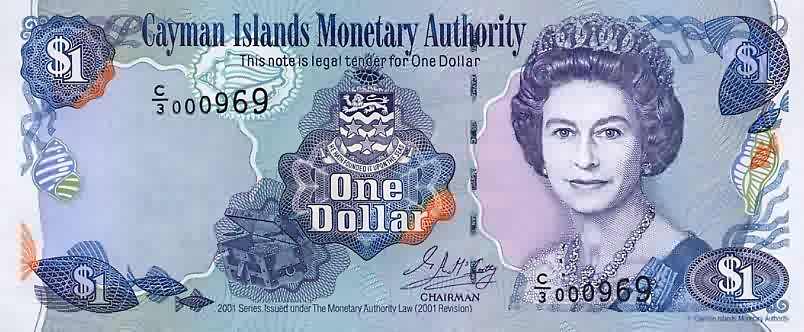 1 Dollar 2001 26a  caymanp26.jpg (53630 bytes)  caymanp26x.jpg (46172 bytes)   UNC 2.75sold
