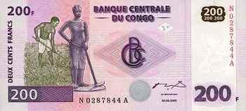 200 Francs 30.6.2000 95a1  congonew200francs2000.jpg (6951 bytes)  congonew200francs2002x.jpg (8360 bytes) printer G&D   N-A UNC 5.00