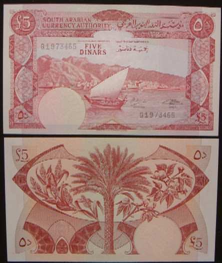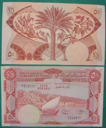 5 Dinars ND 8b  yemdemp8b.jpg (25153 bytes) Sign 4 AU-UNC 25.00